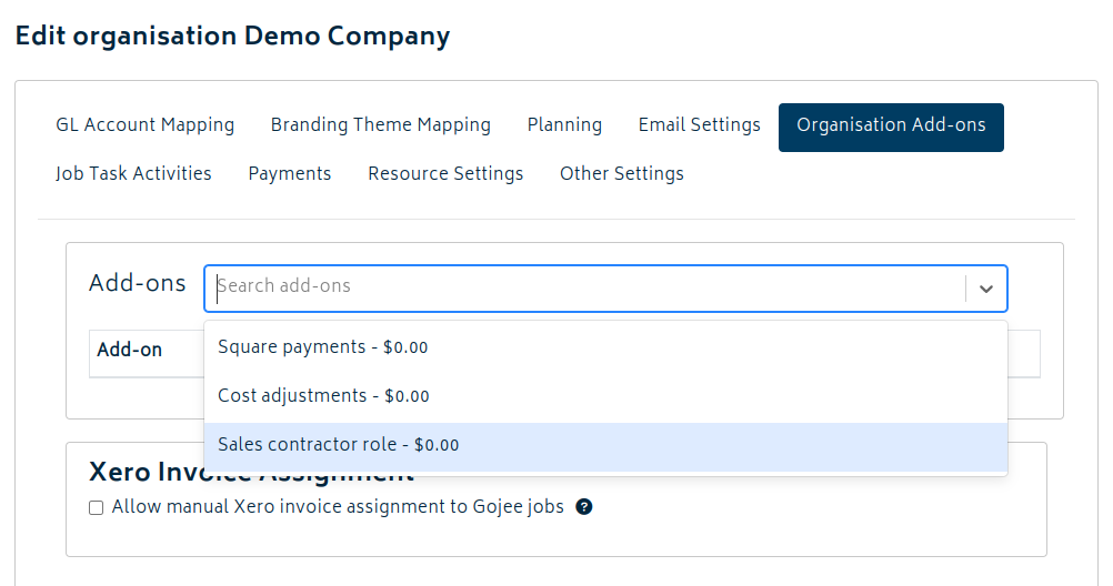 In order to enable Sales Contractors for your organisation, the add-on must be enabled in the organisation settings. Please contact Gojee if you wish to have it enabled.