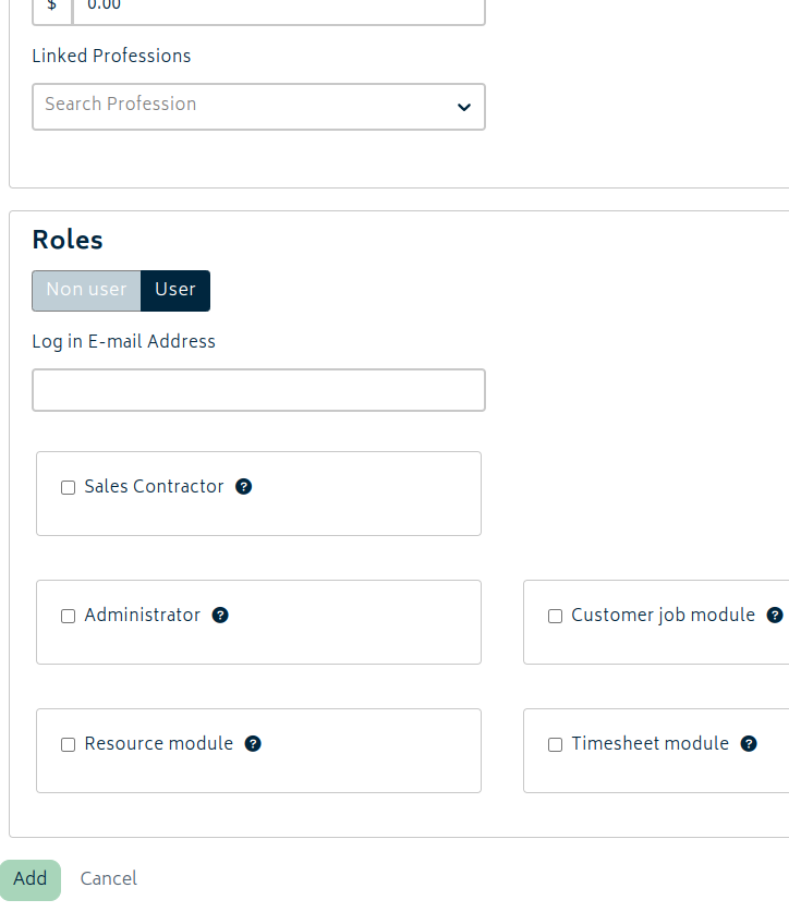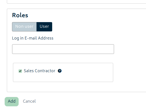 Once the Sales Contractors add-on is enabled, you will be able to set the role for users, whether they previously exist or are new users.
