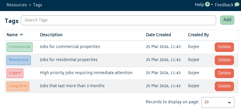 Tags are a powerful tool to help you keep your jobs and inventory organised in the way that you see fit, and then see that at a glance from the job/inventory list page. You can use them any number of ways: